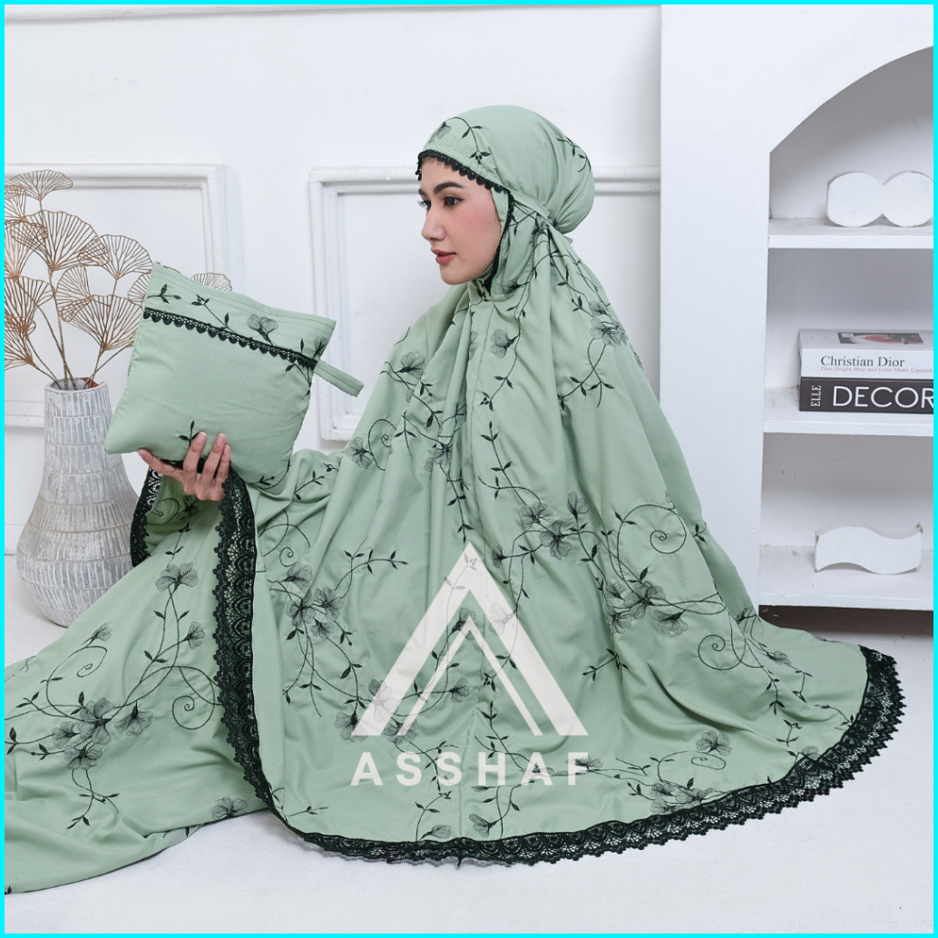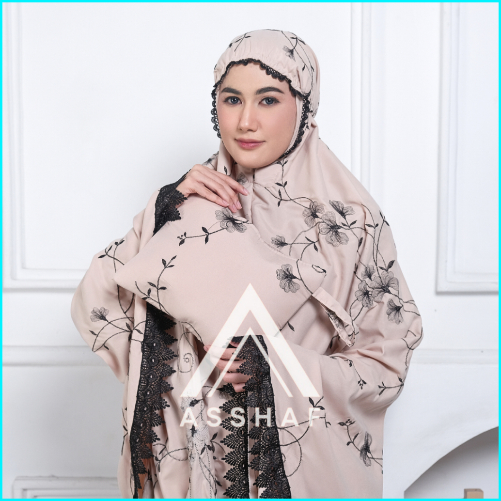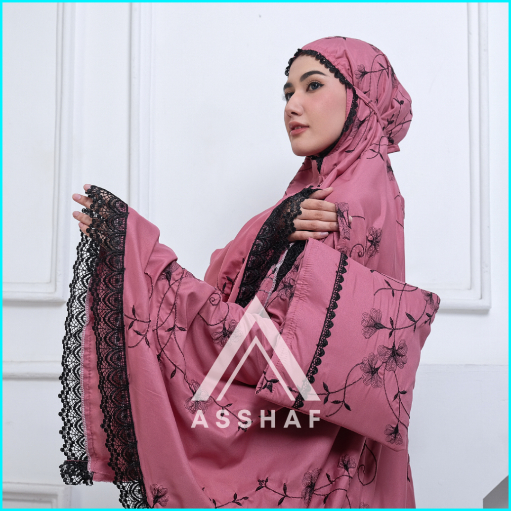 Asshaf - Mukena Dewasa Katun Premium Bordir Bunga Amarilis Renda Mewah