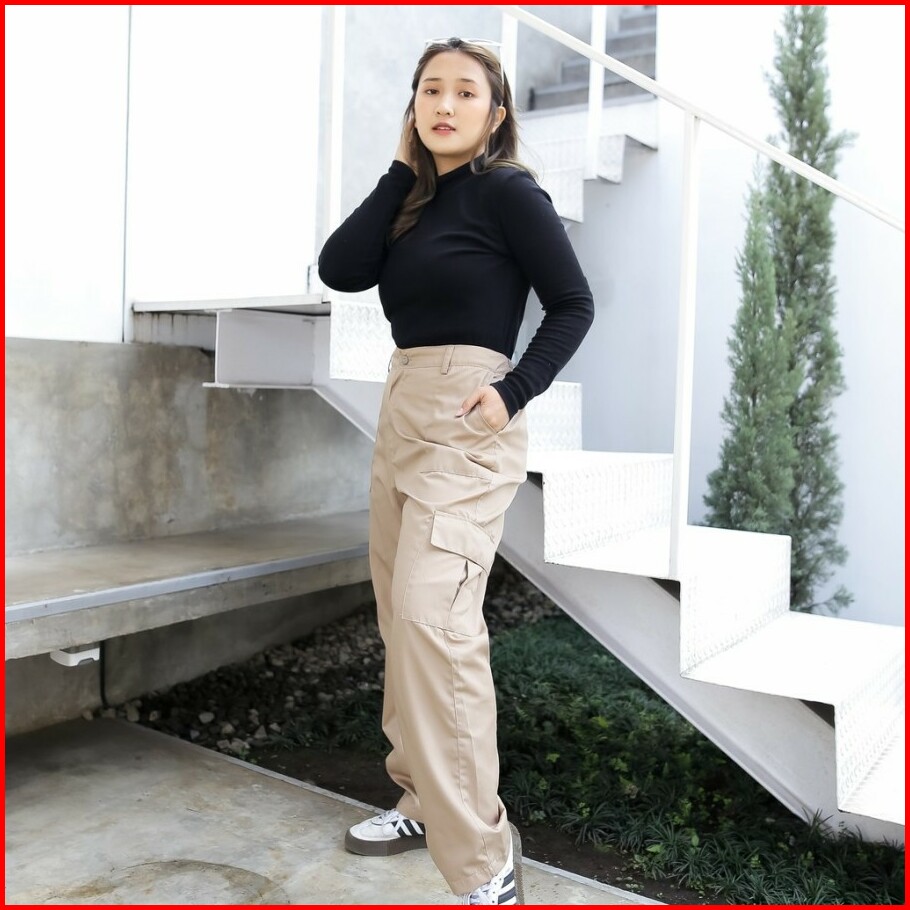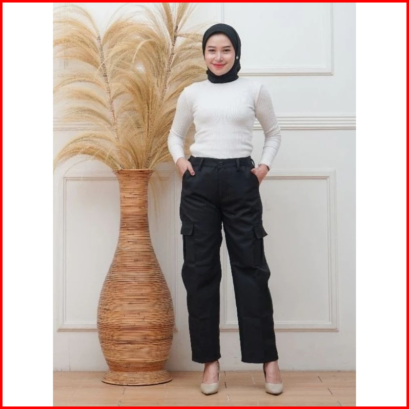 Syawa Celana Cargo Wanita Higwaist Premium Jumbo - Cargo Pants Terbaru - Celana Kargo Wanita