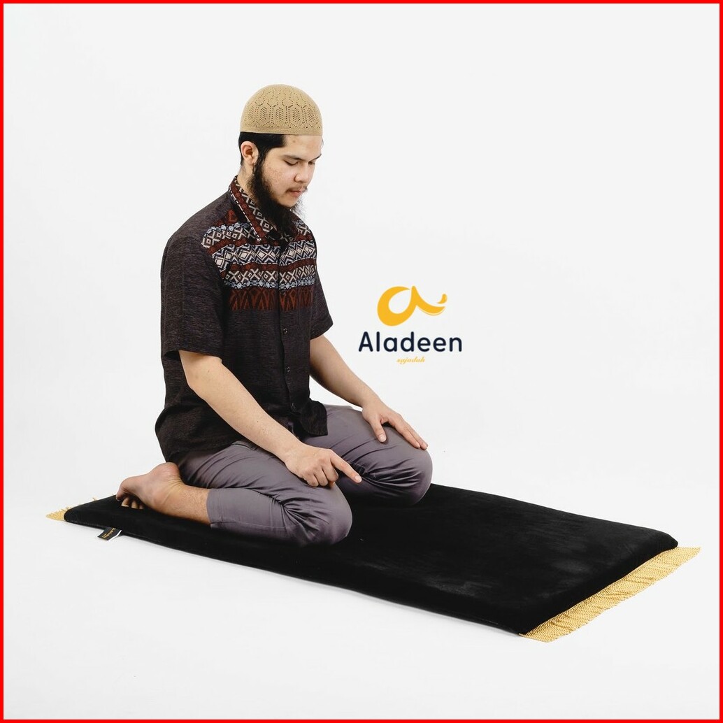Sajadah Polos Bulu Tipis Hitam Aladeen - Size Dewasa Free Tas Dan Kartu Ucapan