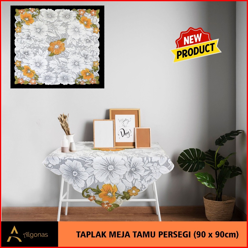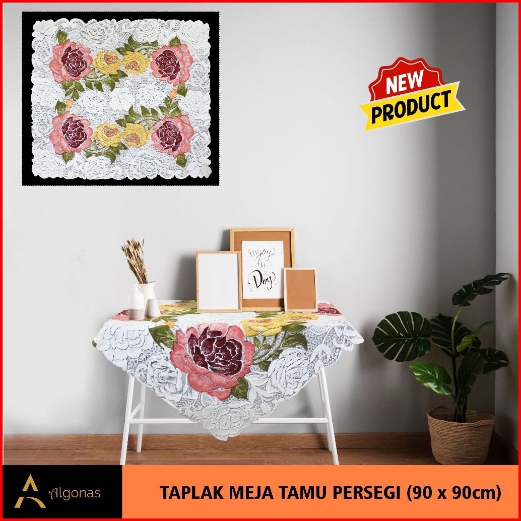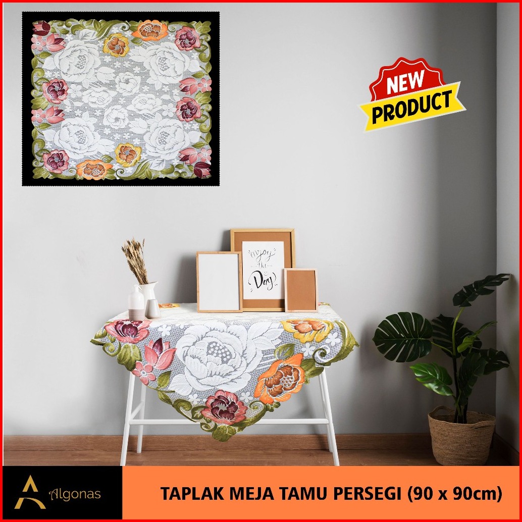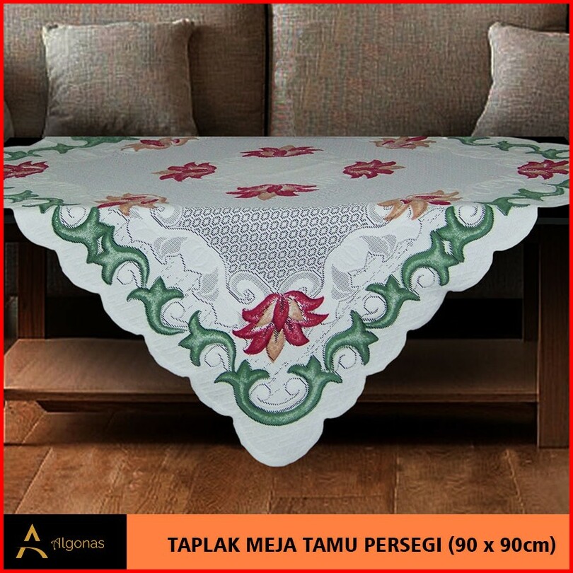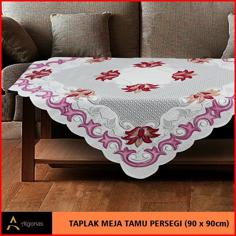 Taplak Meja Tamu Persegi Algonas Motif Bunga 3d Tebal 90x90