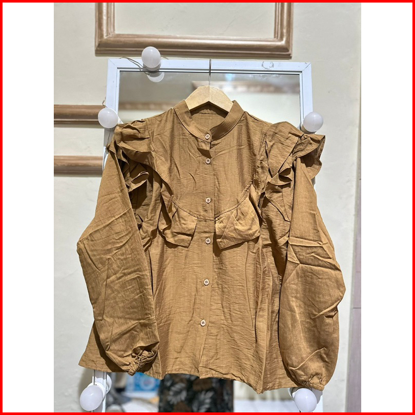 Blouse Rafella Viral Kekinian Polo Linen Premium Kemeja Wanita Terbaru