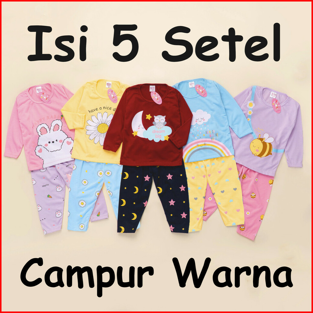 Isi 5 Setel Setelan Anak Bayi Piyama Tidur Colourfur Print Set Baju Anak Anak Unisex 0 - 4 Tahun Baju Tidur Anak Bayi Ba