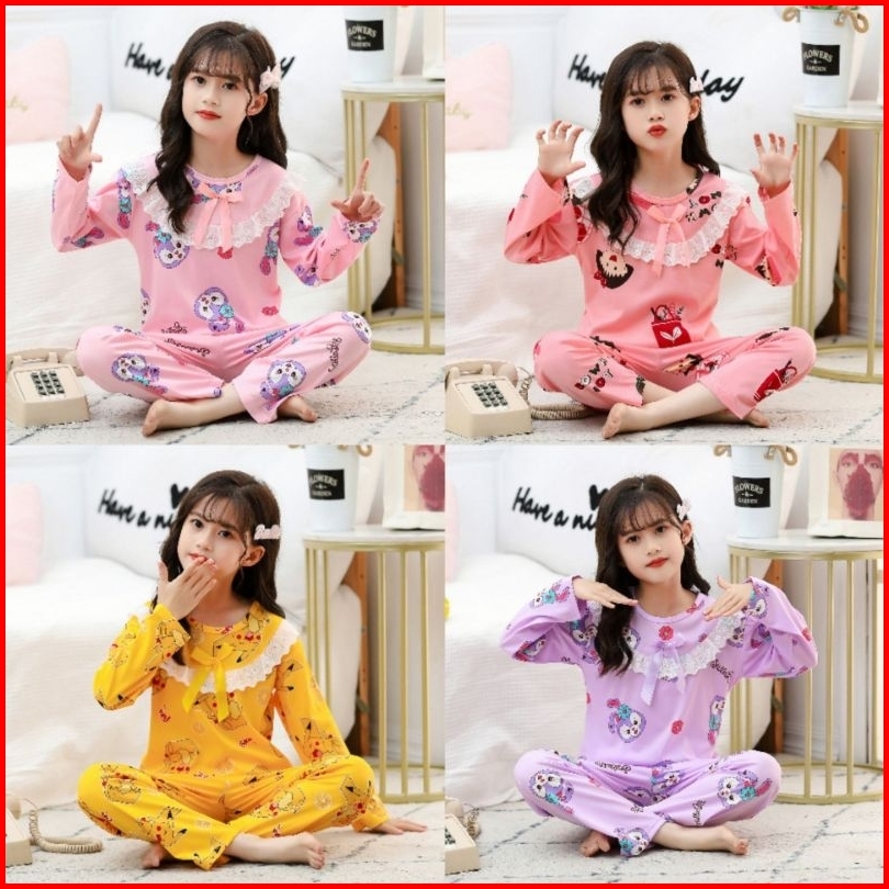 Setelan Piyama Baju Tidur Anak Perempuan Import Motif Karakter Kelinci Jerapah Stawberry