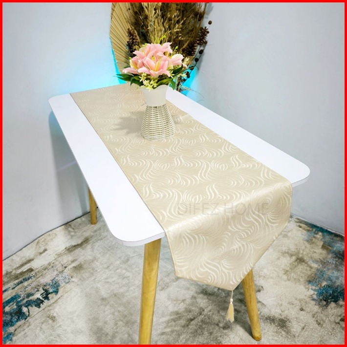 Taplak Meja Tamu Anti Air Table Runner Alas Meja Makan Tebal Kuat Tassel Rumbai