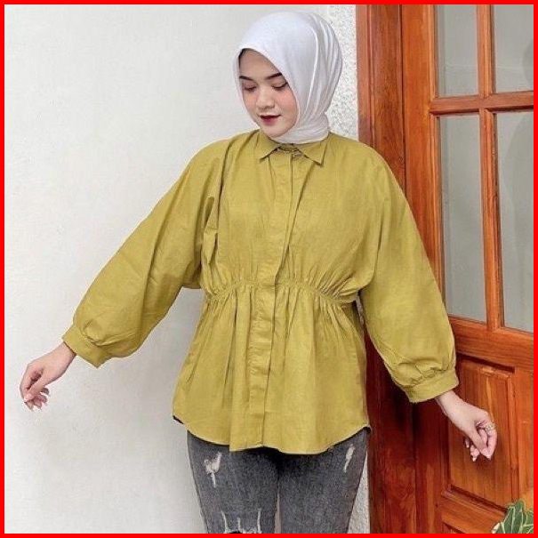 Kemeja Wanita - Alya Shirt Kemeja Linen Kerut Depan - Atasan Wanita Oversize