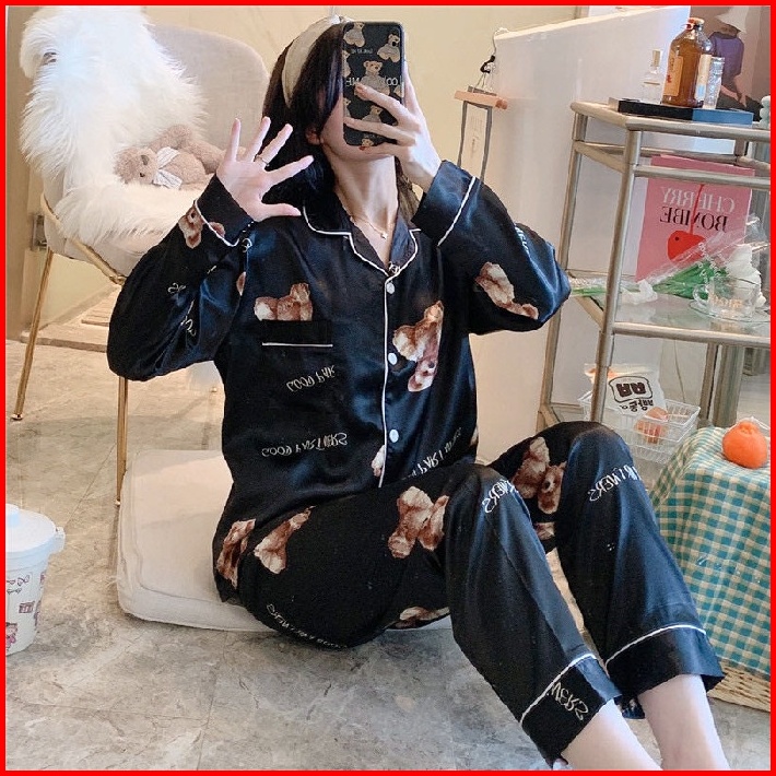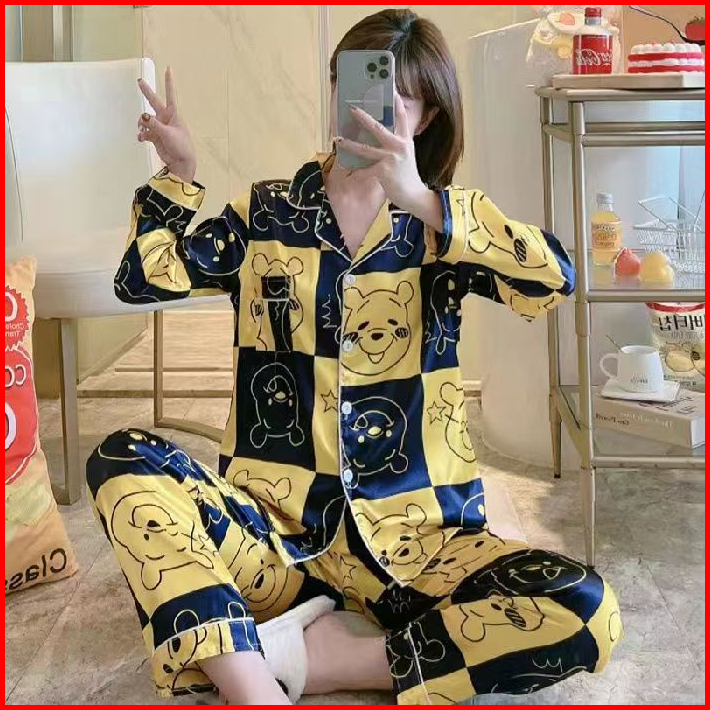 Piyama Satin Kancing Baju Lengan Panjang Dan Celana Panjang Psp