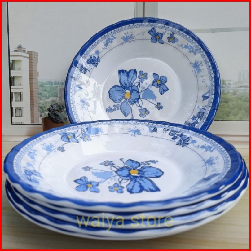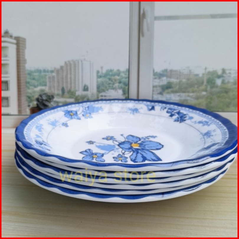 12 Pcs Piring Makan Motif Bunga Piring Melamin Motif