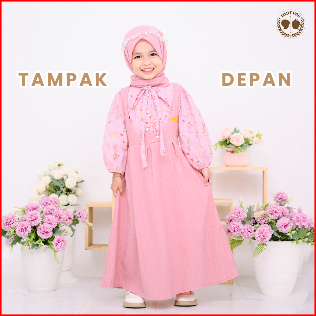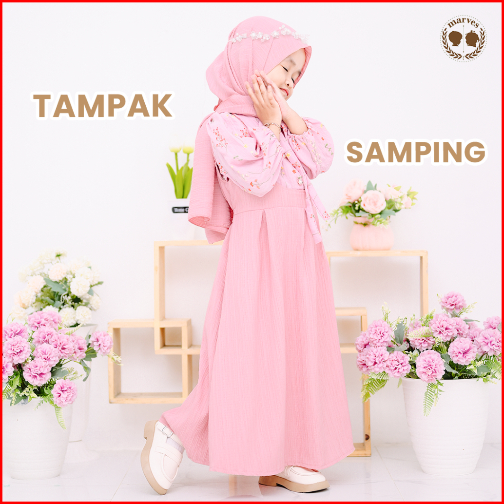 Marves Chalinda Gamis Anak Korean Style Free Kerudung Usia 1 Hingga 14 Tahun