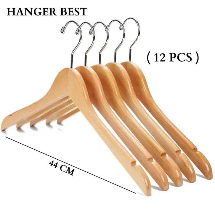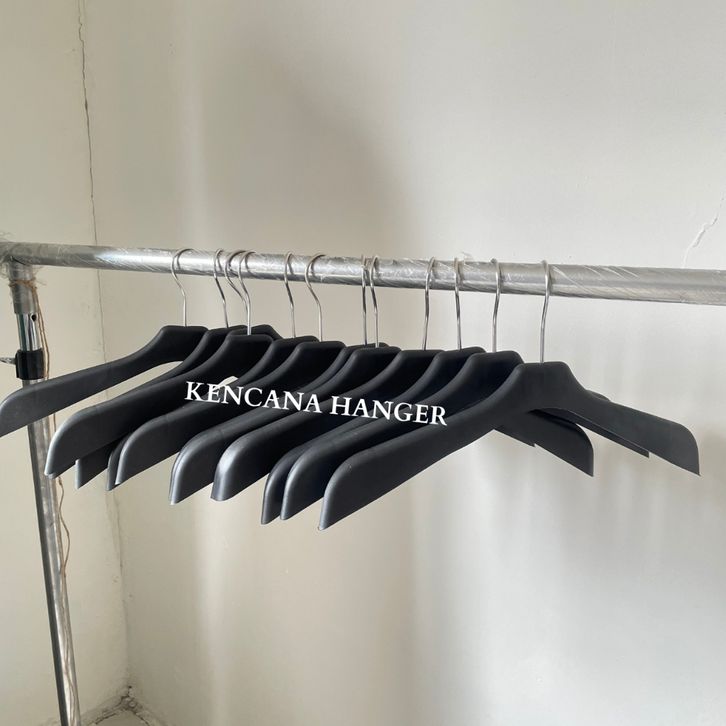 Hanger Kayu& plastik hitam 12PCS Palang Dewasa Natural Super Premium