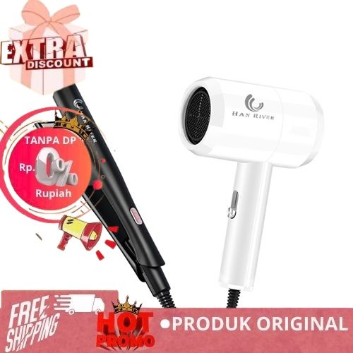 HAN RIVER HAIR DRYER & CATOKAN RAMBUT SET / LOW WATT PENGERING RAMBUT & CURLING IRON 2 IN 1 CATOKAN HITAM - HITAM