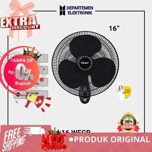 COSMOS 16 WFGR WALL FAN 16 IN BLACK + REMOTE / KIPAS ANGIN DINDING / 1