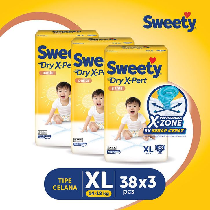 Pampers Pempers Sweety Bronze Pants XL 38 Popok Celana Bayi 3 Packs