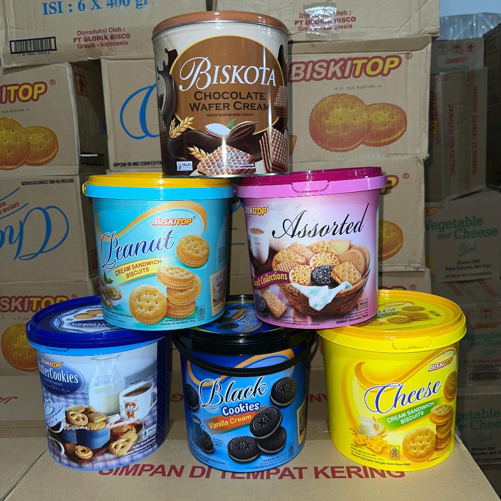 FREE ONGKIR! BISKITOP BUTER COOKIES, ASSORTED, BLACK COOKIES 370 GRAM 1 DUS ISI 6 TIMBA