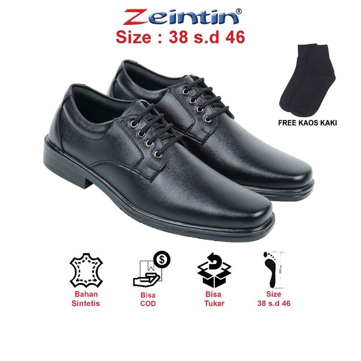 Zeintin - Sepatu Pantofel Pria Zeintin BJ 2205 Hitam Bahan Kulit Sintetis Sepatu Formal Kasual BJ