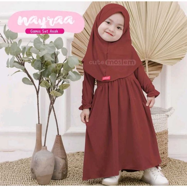 gamis anak perempuan set hijab NAYRA SYAR'I KIDS usia 2-6 tahun Gamis anak syari baju lembaran anak 6 tahun