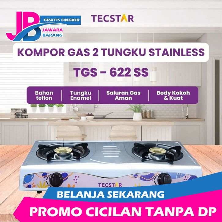 FREE ONGKIR TECSTAR Kompor Gas 2 Tungku Stainless Optimax Teraflon Anti Lengket dan Slip Api Biru SNI TGS622SS