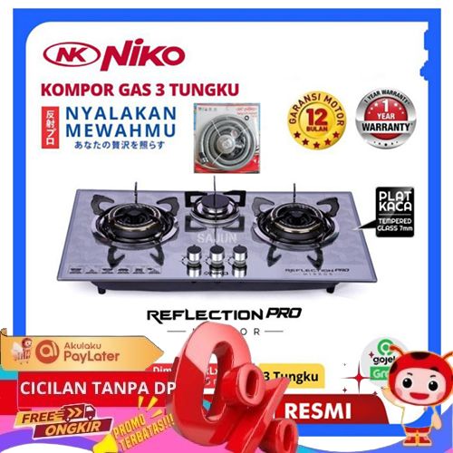 NIKO KOMPOR TANAM KOMPOR GAS NIKO REFLECTION PRO MIRROR 3 TUNGKU - SAKURA 2 TUNGKU