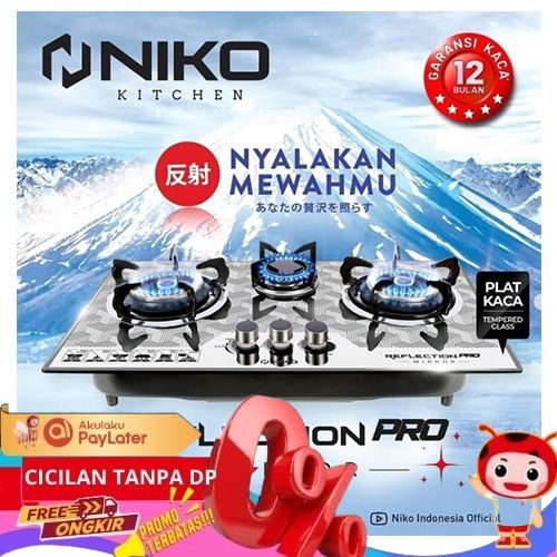 KOMPOR TANAM GAS KACA 3 TUNGKU NIKO REFLECTION PRO FREE REGULATOR