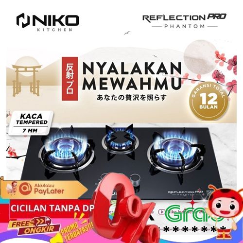 NIKO KOMPOR GAS TANAM KACA HITAM SOLID 3 TUNGKU REFLECTION PRO PHANTOM - PHANTOM, KOMPOR SAJA