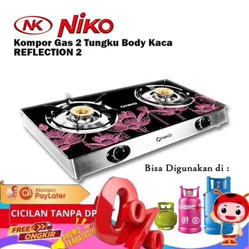 NIKO REFLECTION 2 KOMPOR GAS KACA 2 TUNGKU MOTIF BUNGA BODI TIPIS
