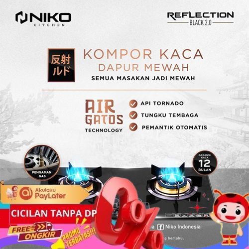 NIKO KOMPOR GAS 2 TUNGKU REFLECTION BLACK KOMPOR TANAM KACA