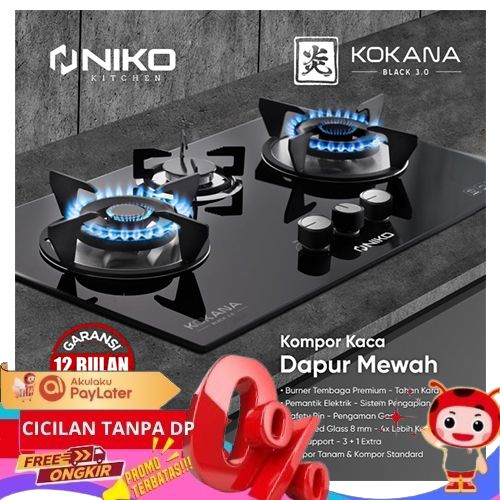 NIKO KOKANA BLACK 2.0 - 3.0 KOMPOR GAS TANAM 2 TUNGKU DAN 3 TUNGKU - 2 TUNGKU