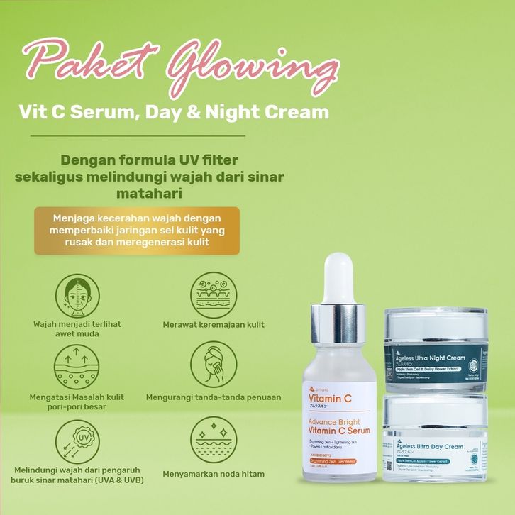 [Star] Amura Paket Glowing - Spesialis Perawatan Kusam dan Cerahkan Wajah (Vit C, Night Cream, Day Cream)