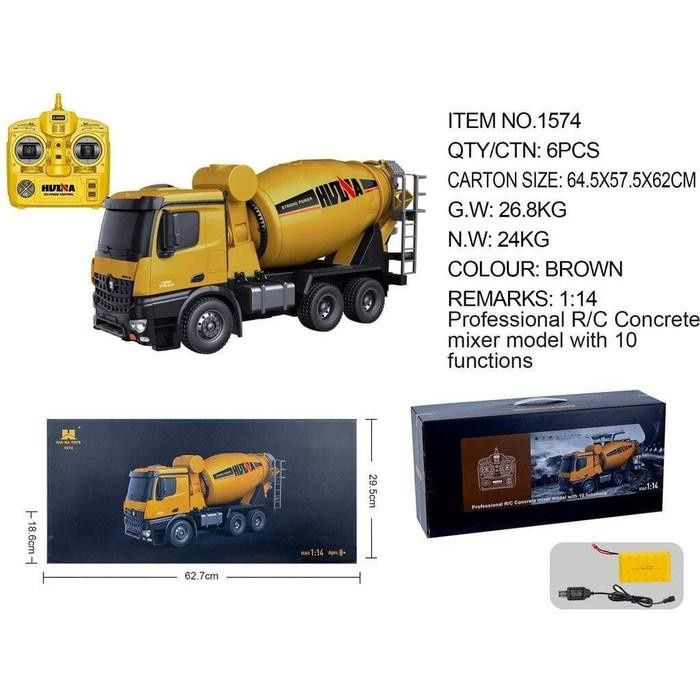 Huina 1574 RC Mixer Truck Metal Alloy 1/14 10CH RC Alat Berat Truk Molen RTR
