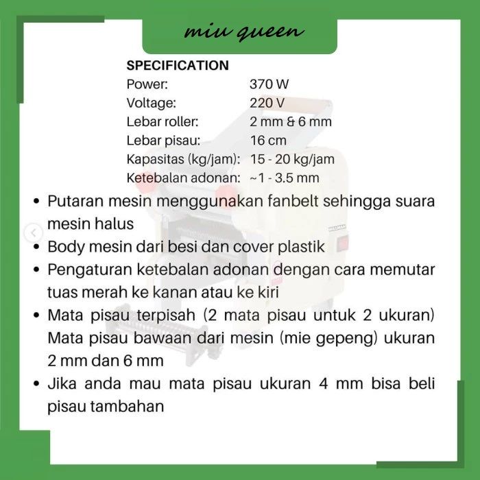 Mesin Gilingan Mie Pasta Pastel Listrik Noodle Maker Willman DJJ-160