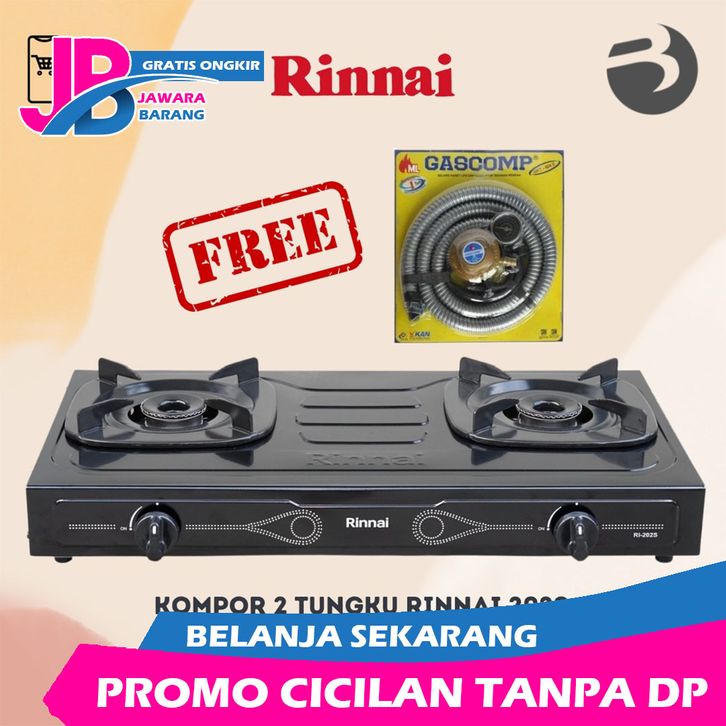FREE ONGKIR Kompor Gas Rinnai RI302S / RI 202S 2 TUNGKU + Selang Gas + Regulator Gas Gascomp SNI
