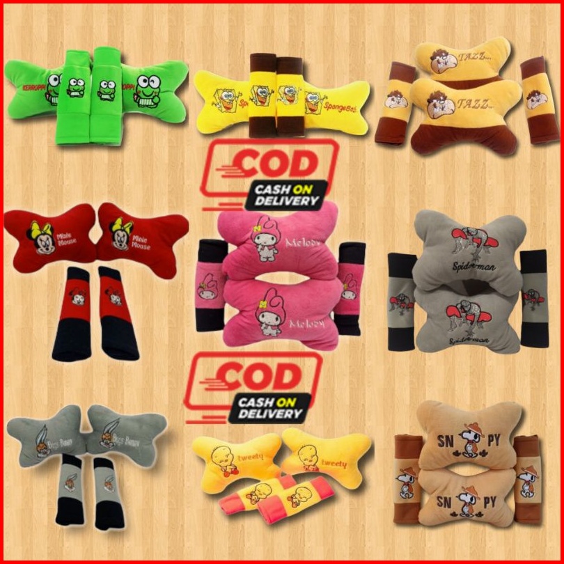 Bantal Mobil 2in1 Set Karakter Cartoon Kartun Set 2in1 Mobil Bantal Karakter Headrest Car