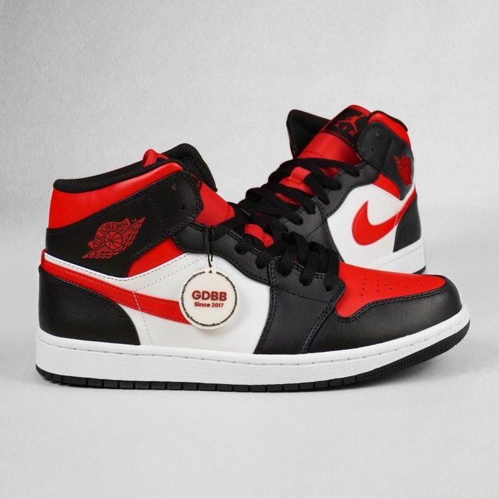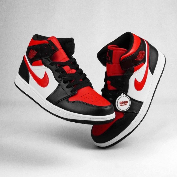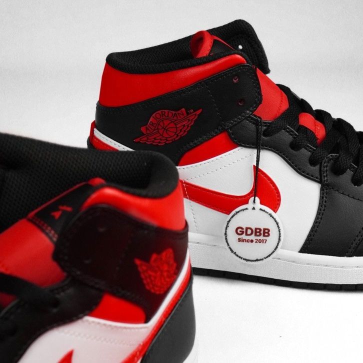 Terbaru ! Nike Air Jordan 1 Mid Alternate Bred Toe Black White Red Authentic