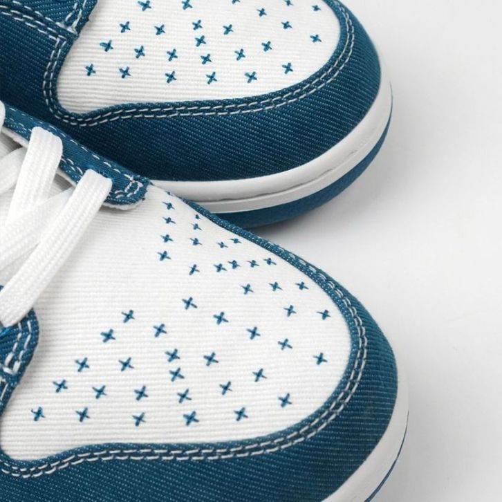 Terbaru ! Nike Dunk Low SE Sashiko Industrial Blue Denim White Blue Authentic