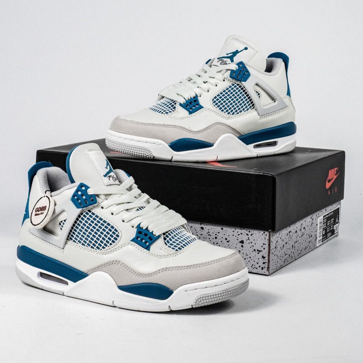 Terbaru ! Sepatu Nike Air Jordan 4 Retro Military Blue Industrial Blue Sneakers Authentic