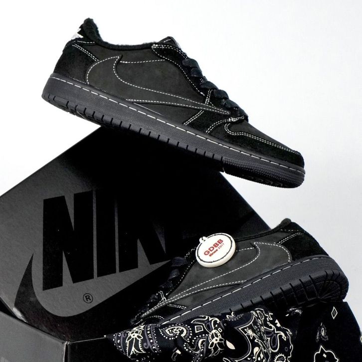 Terbaru ! Nike Air Jordan 1 Low x Travis Scott Black Phantom All Black Full Black Authentic