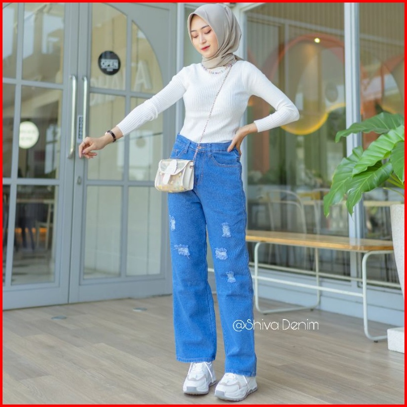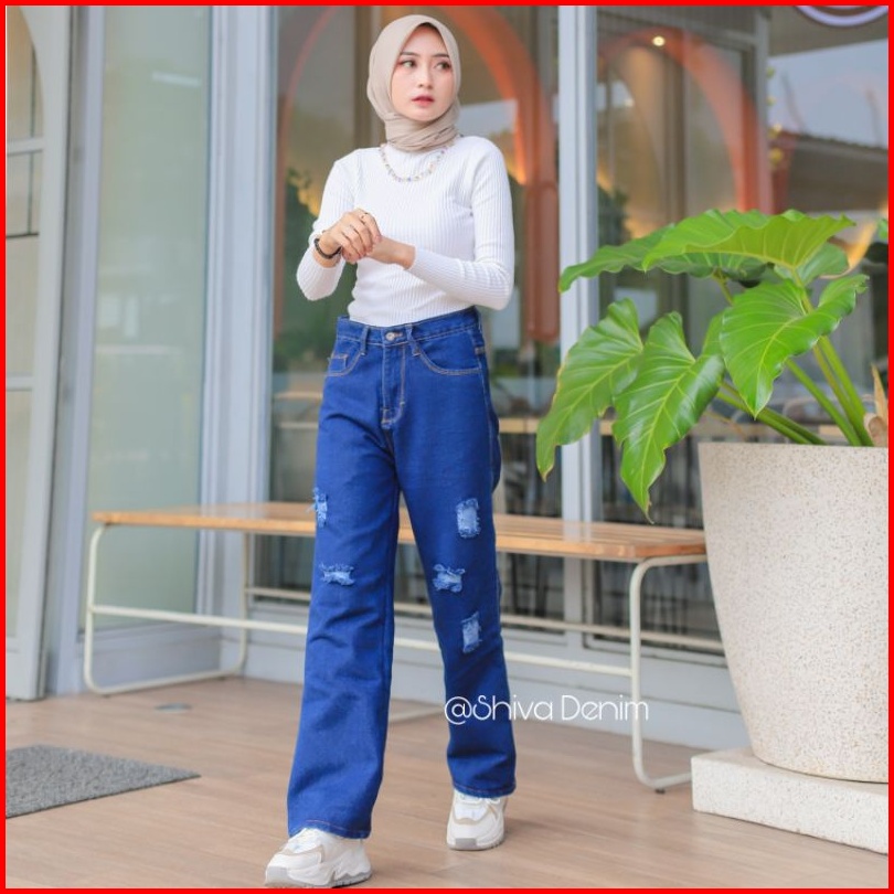 Celana Jeans Wanita Highwaits Boyfrend Robek Hw Pinggang Tinggi Deyfera Boyfie Ripped Premium