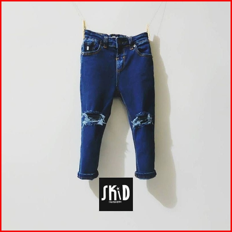 Celana Jeans Anak Darkblue Biru Tua Softjeans Strech Denim Ripped Sobek Ukuran 6 Bulan Sampai 13 Tahun