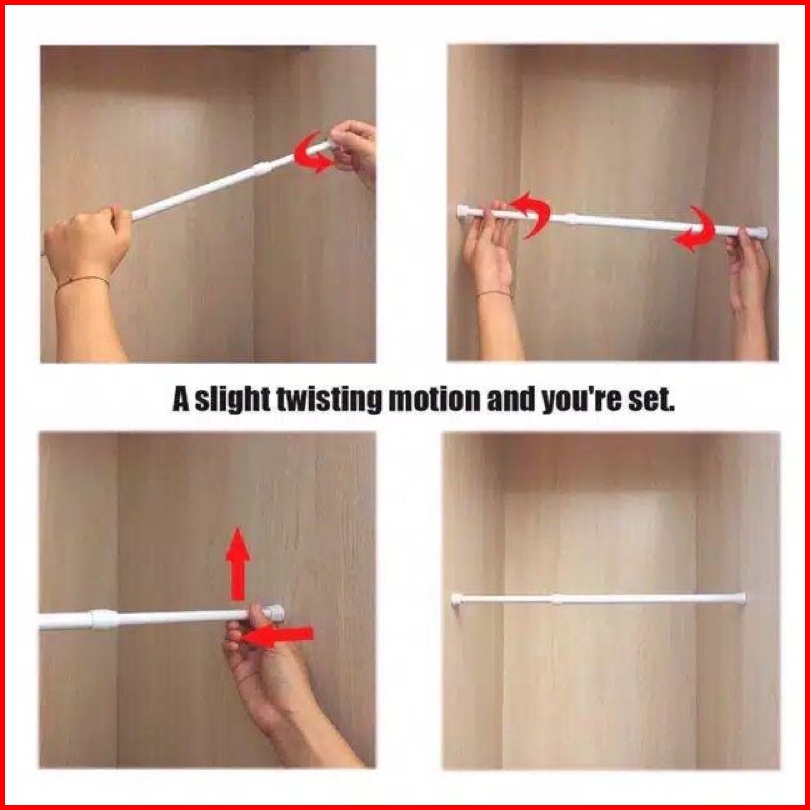 Tiang Flexibel Tongkat Gantungan Gorden Tirai Kamar Mandi Lemari Tanpa Paku Portable