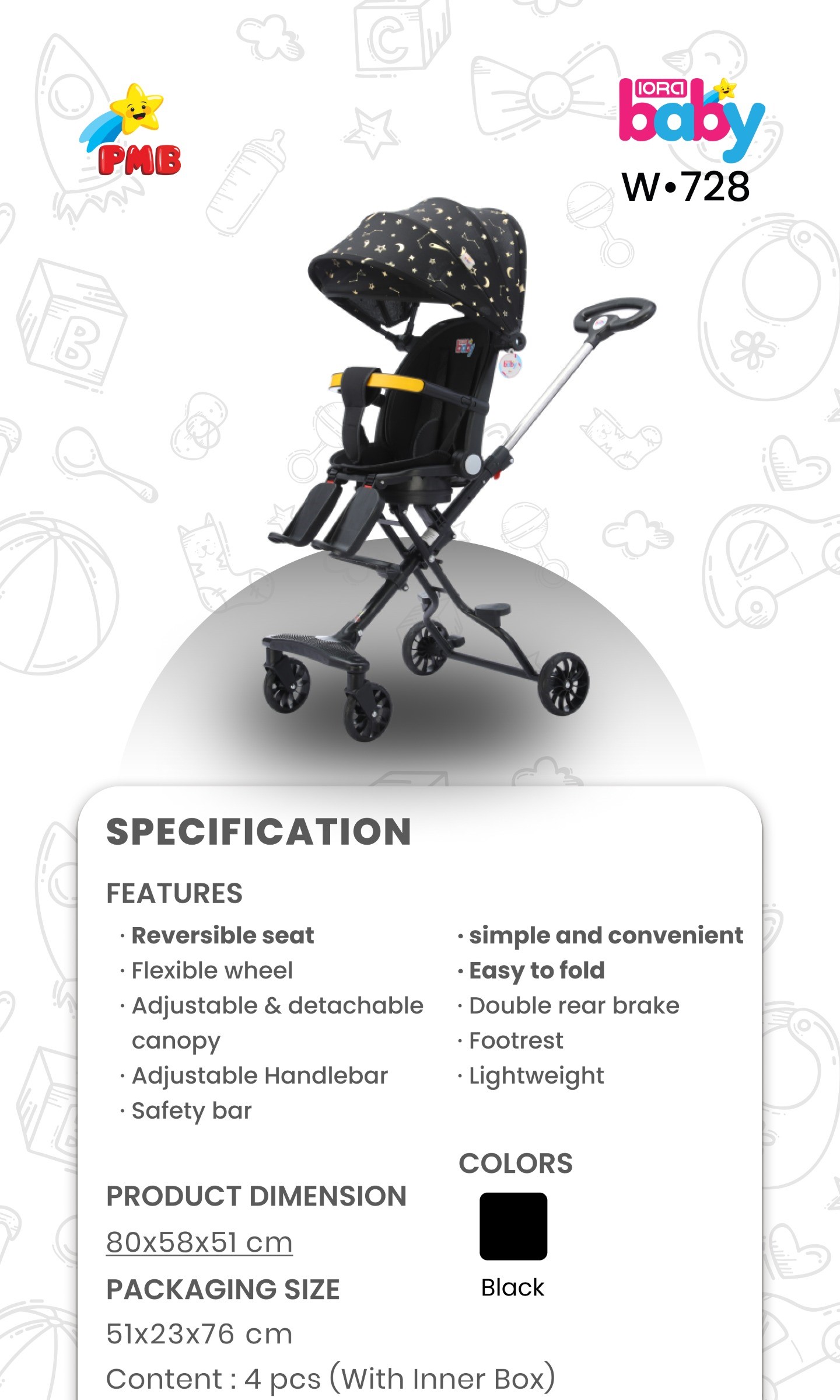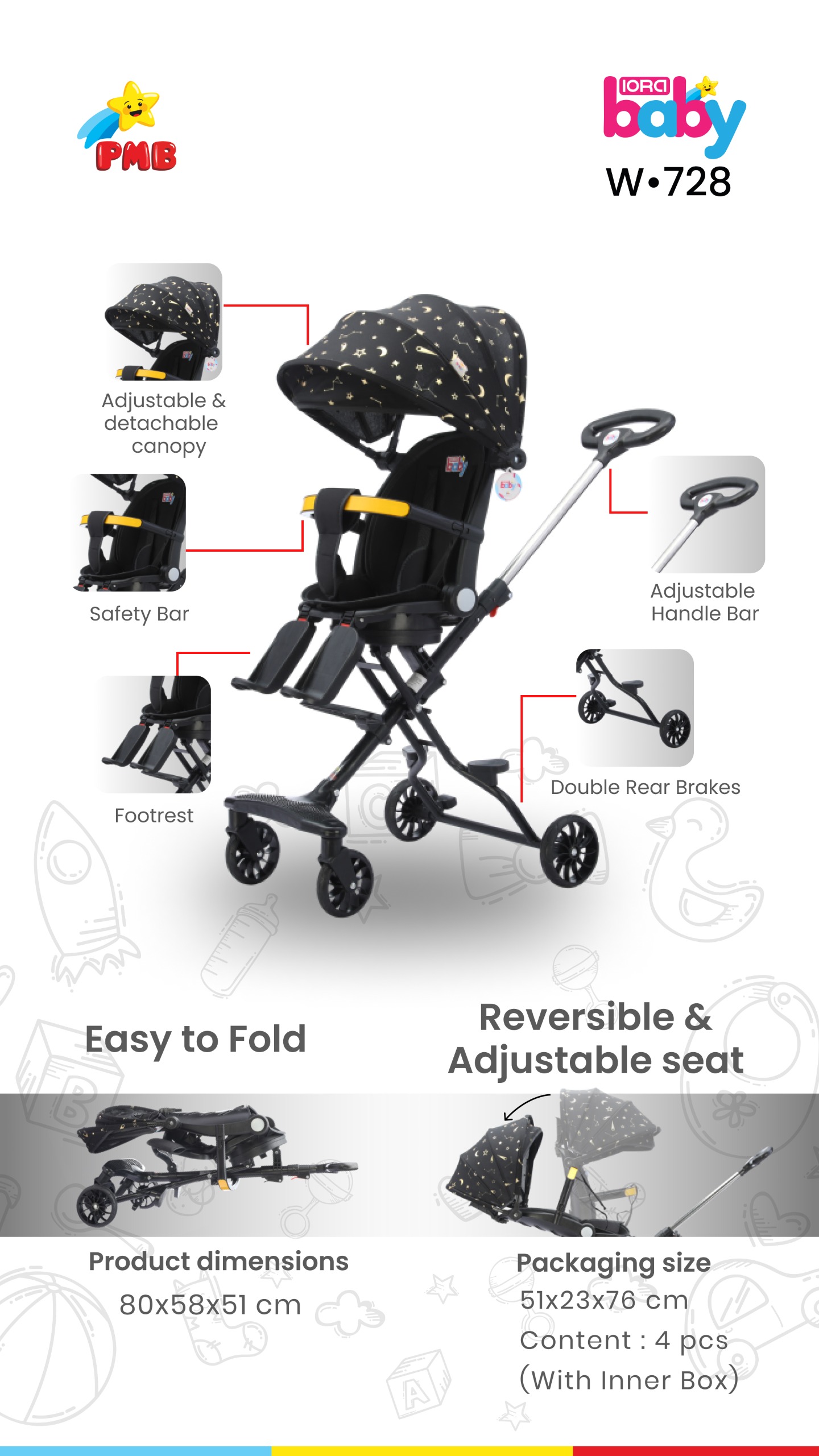 W 728 MAGIC STROLLER IORA BABY W728 PERLENGKAPAN TRAVELLING BAYI KANOPI SAFETY BAR ADJUSTABLE SEAT PMB TOYS