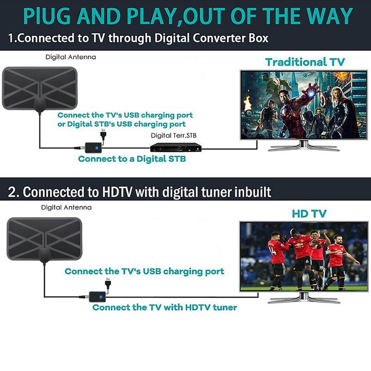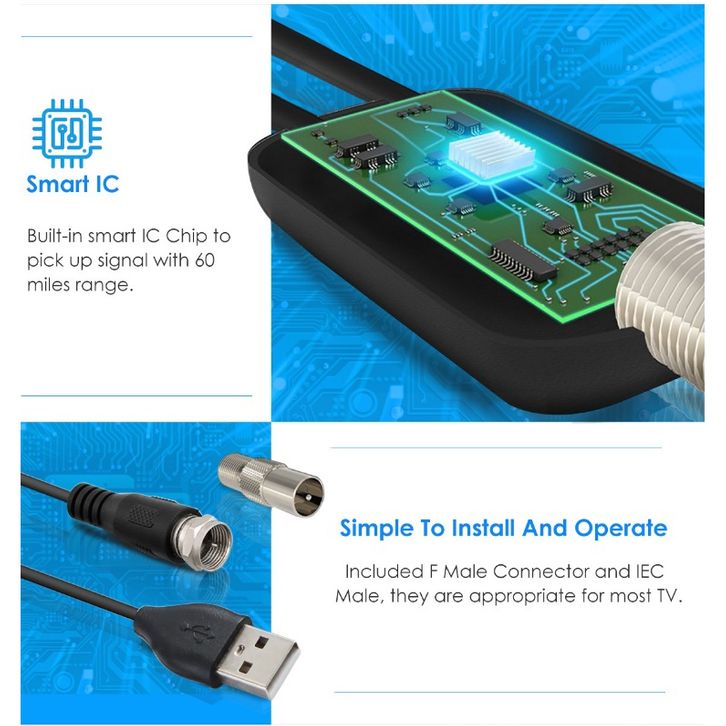 Antena TV Digital Indoor DVB-T2 25dB Spider Jack Male Plug