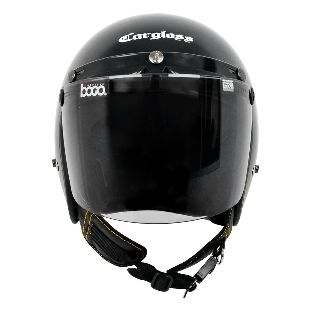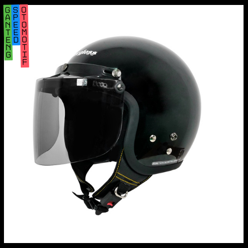HELM CARGLOSS CFM RETRO VISOR FLAT SMOKE HALF FACE M L XL DEEP BLACK HELEM DEWASA SNI ORIGINAL