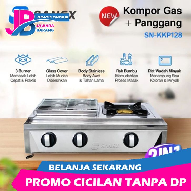 SANEX Kompor Gas + Panggang 2 in 1 SN-KKP128 Kompor Gas 1 Tungku dan Pemanggang 2 Tungku (Sate, Sosis, Ikan, Ayam)