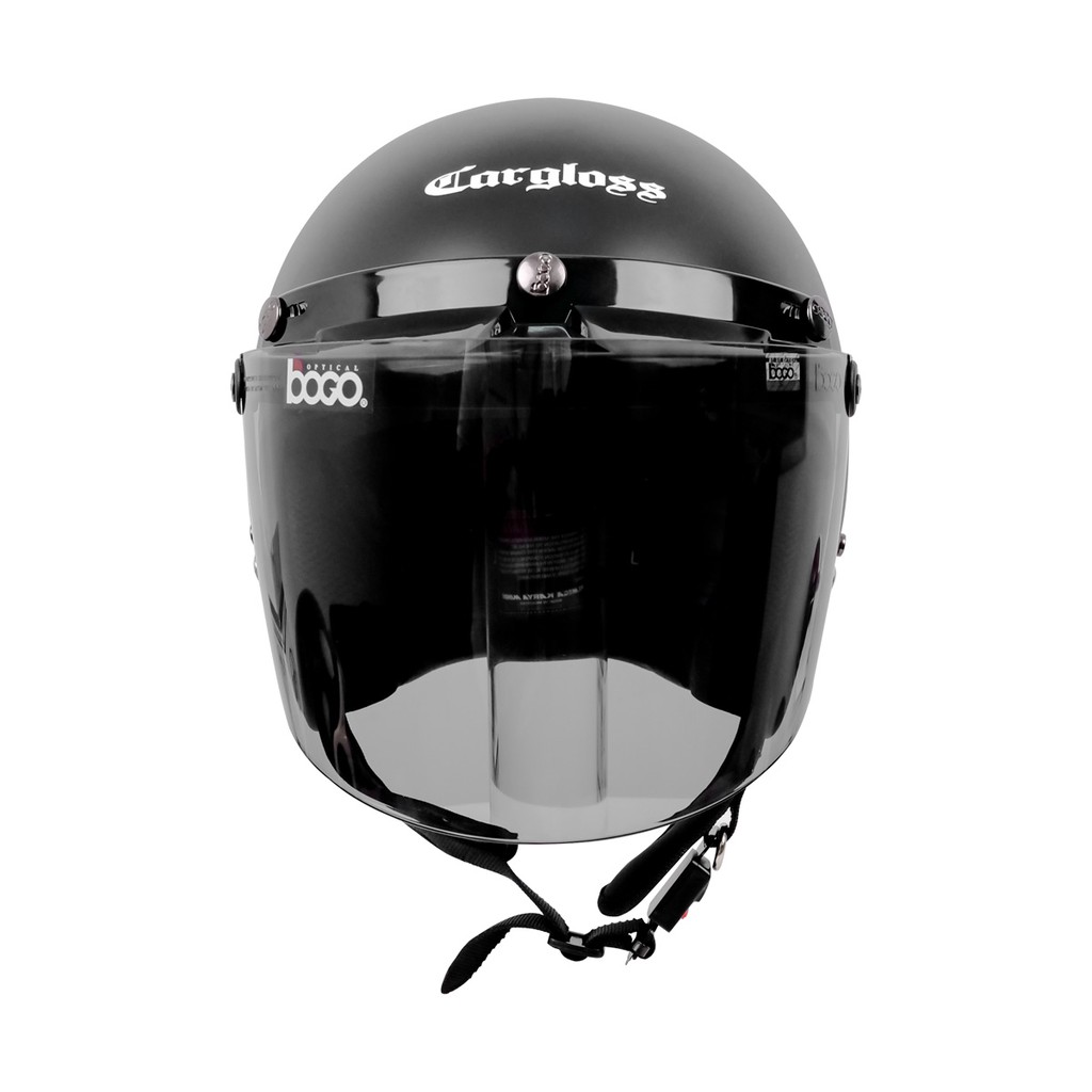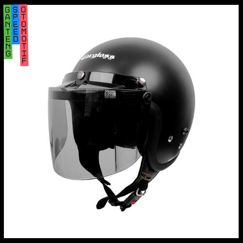 HELM CARGLOSS CFM RETRO VISOR FLAT SMOKE HALF FACE SIZE 57 58M 59 60L 61 62XL HELEM DEWASA BLACK DOFF SNI ORIGINAL