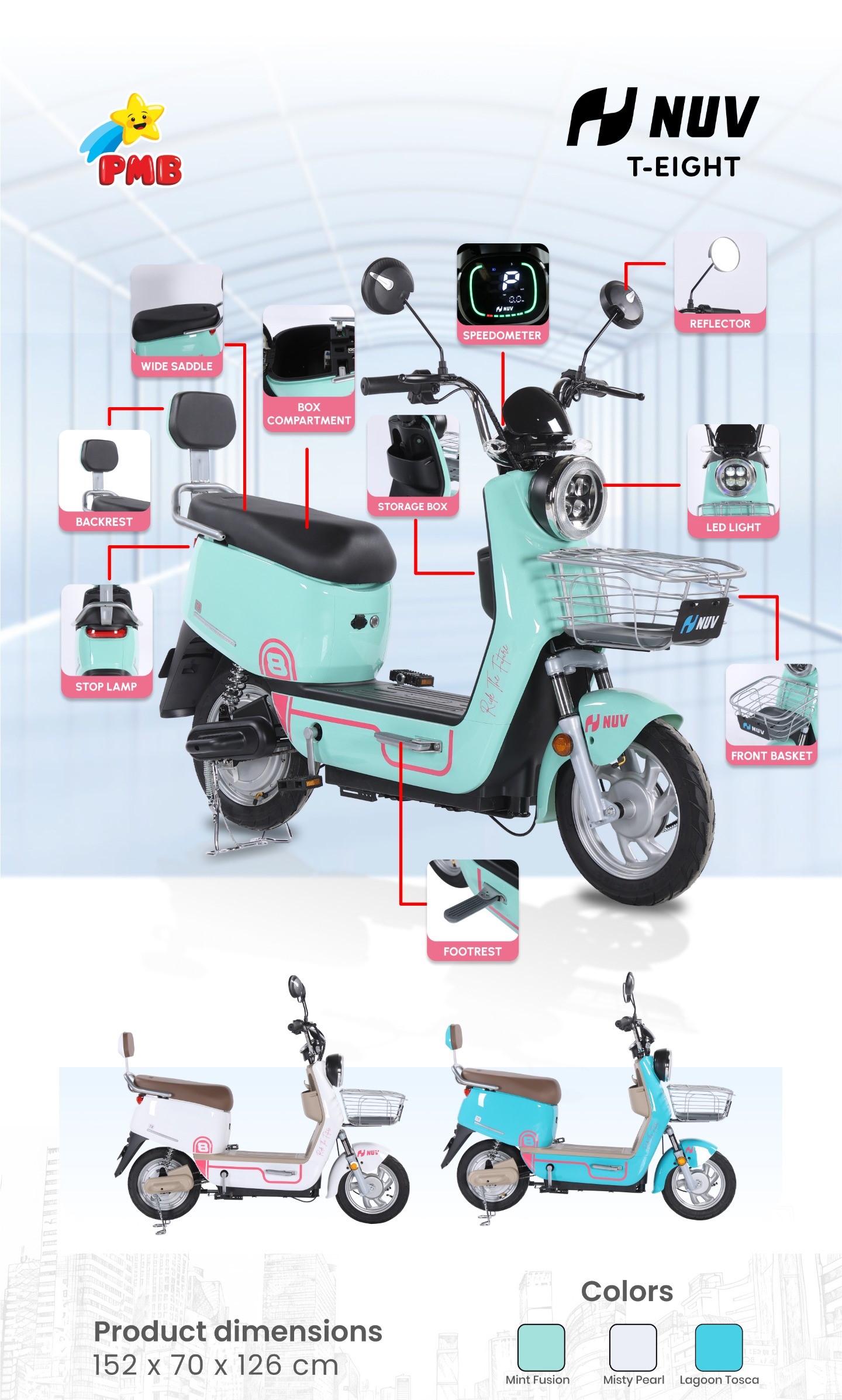 SEPEDA LISTRIK 48V 12AH KEREN NUV ELECTRIC BIKE T-TWO 450 watt LED Lamp keranjang