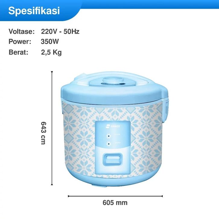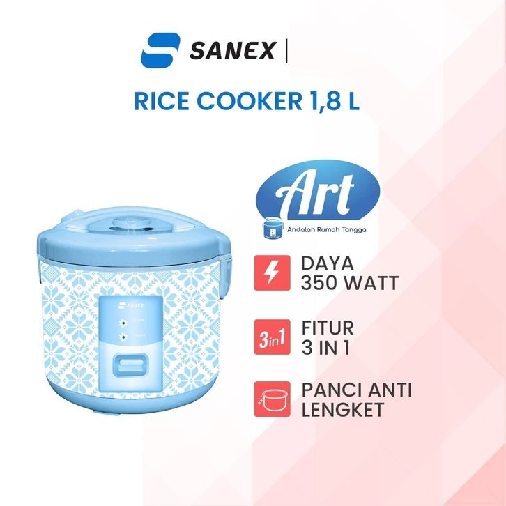 SANEX Rice Cooker Penanak Nasi Anti Lengket 3 in 1 ART Series 1,8 L