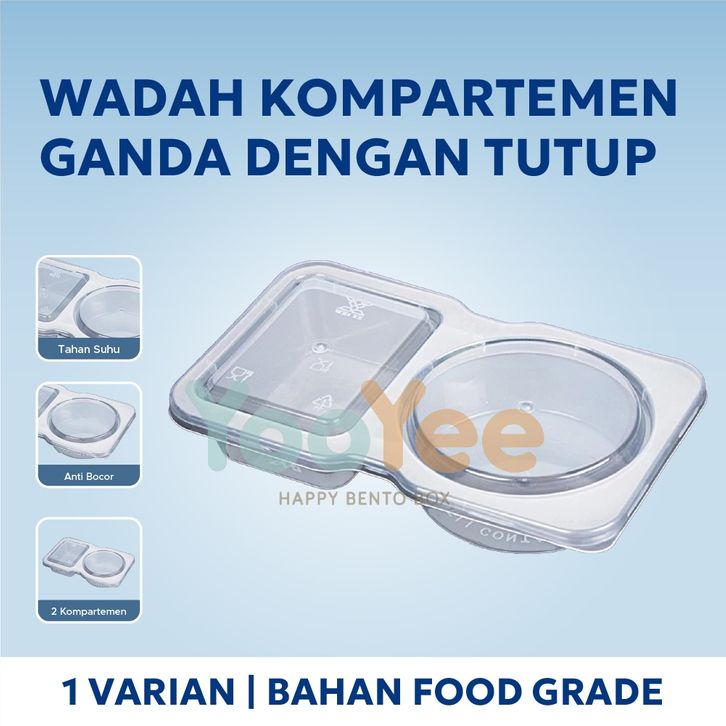 Yooyee Thinwall wadah snack kompartemen ganda dengan tutup portabel bisa dipakai ulang