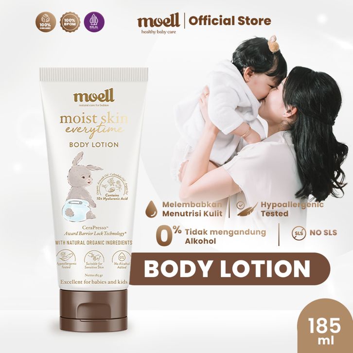 Moell Body Lotion Bayi 185gr - Moist Skin Everytime - Pelembab Kulit Bayi - Natural Organic / NADYA