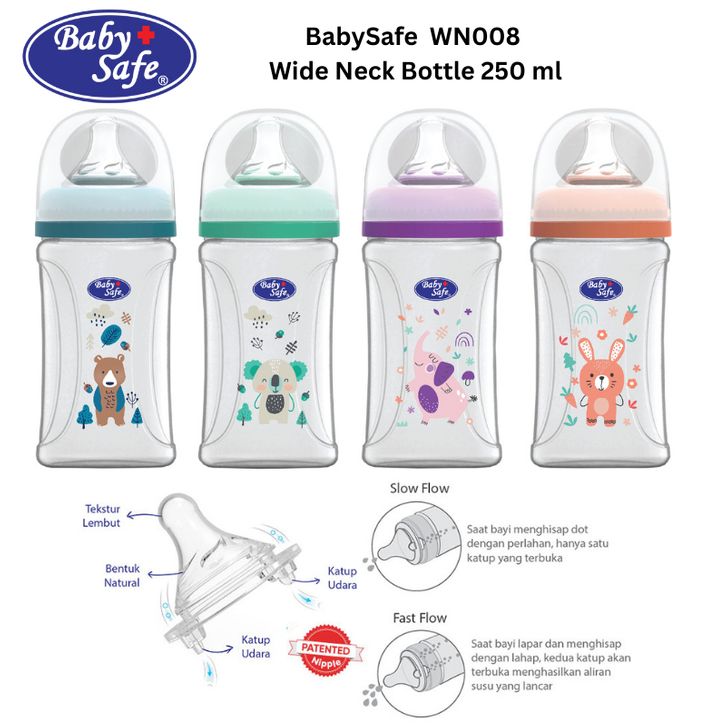 Botol Susu Bayi Baby Safe Wide Neck WN07 / WN08 Wide Neck Bottle 120ml / 250ml / NADYA