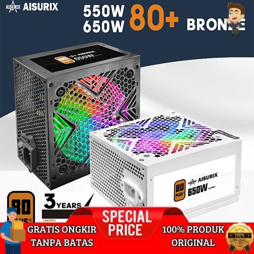 [Mall] AISURIX PSU 550W/650W 80PLUS Bronze Power Supply 650W Gaming 550 Watt 80+ Bronze White