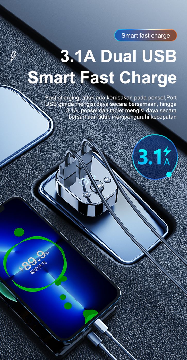 Car Charger Mobil fast charging KIVEE Dual USB+MP3 Player Aksesoris Mobil Bluetooth Transmitter